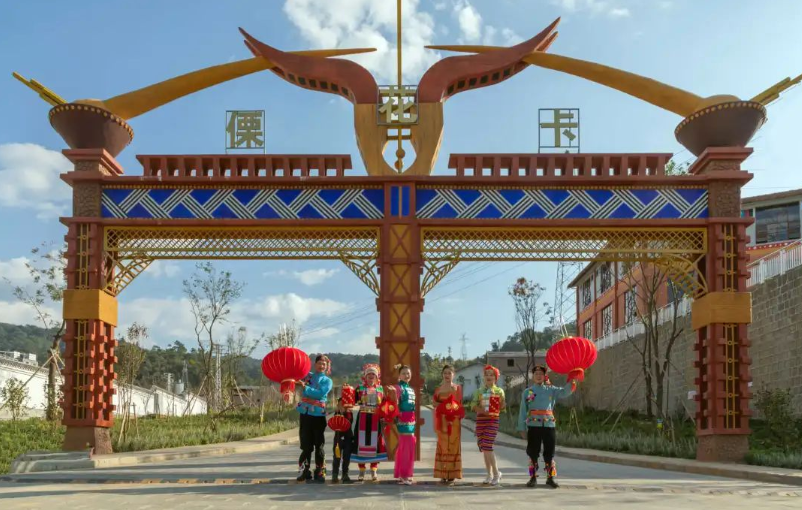 在云南省德宏傣族景颇族自治州梁河县遮岛镇,半山坡上的红墙屋舍如展翅的飞鸟,与背后葱郁的山林构成一幅和谐的画卷,这里是遮岛镇傈花卡移民搬迁安置区,151户傈僳族群众的新家园。这个从“一方水土养不好一方人”困境中崛起的傈花卡,正以产业多元、风貌焕新、文化传承的生动实践,书写一份让群众满意的民生答卷。