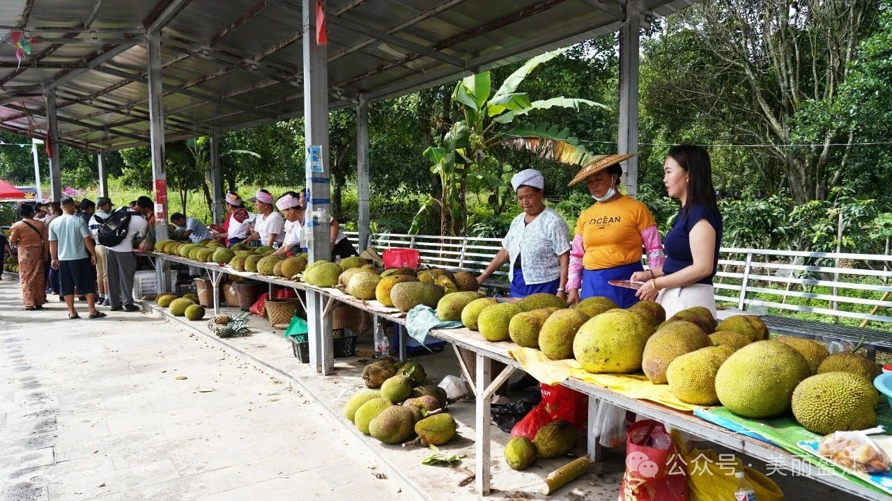 又是一年“麻榔”(傣语音译,意为菠萝蜜)飘香时,一场竞价声与欢笑声在新城乡拉劳村上空交织,7月25日,第十届“麻榔”品鉴会暨德宏州2025年“四季村晚”如约而至。