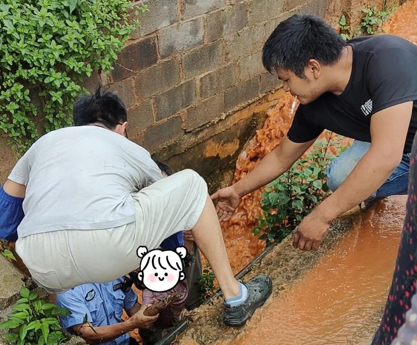 昆明市石林县公安局北大村派出所接到热心群众报警求助后,迅速组织警力赶往现场展开救援。民警辅警到达现场时,只见一把雨伞掉落在路边,水沟内已不见女孩身影。时间就是生命,民警辅警立即展开寻找,其间,辅警李进春隐隐听见一涵洞内有人喊“救命”。