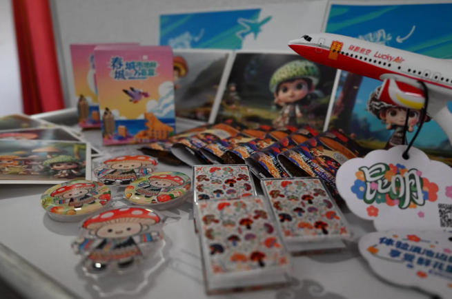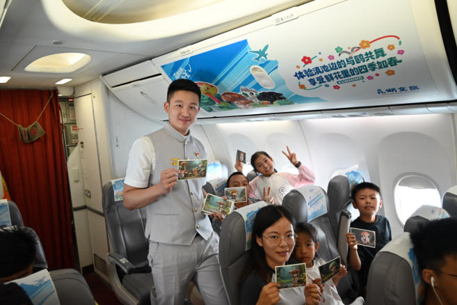 除了美味的松茸饼干,旅客们在航班上还收到了春城城市地标盲盒、野生菌主题明信片等特色礼物。