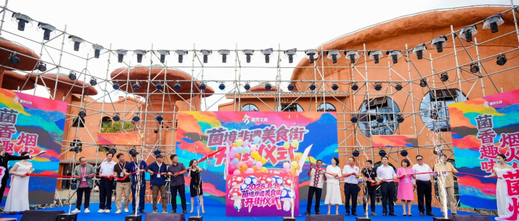 备受瞩目的“菌境”项目于8月8日正式亮相,并同步开启一场持续72小时、融合非遗、美食、潮玩与电音的“菌境狂欢”活动,正式点亮南华的菌旅融合新地标。这场以菌为名的狂欢盛宴可谓“高能”不断,8日红蘑菇坐标天幕开箱,坐标升空,拉开奇幻序幕,观众不仅能沉浸式体验彝族经典舞剧《咪依噜》和野生菌主题微短剧《瓦猫奇幻记》首演,更有激动人心的“菌王争霸赛”(林草局权威认证)和“万人野菌火锅宴”震撼登场——菌山肉海,香气蒸腾,堪称年度舌尖奇观!限量版手绘“菌境护照”也将成为玩家们的必抢收藏。