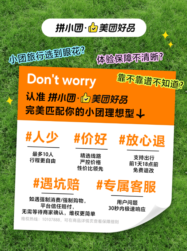美团旅行升级小团游服务保障,放心退、遇坑赔、专属客服等护航出游体验