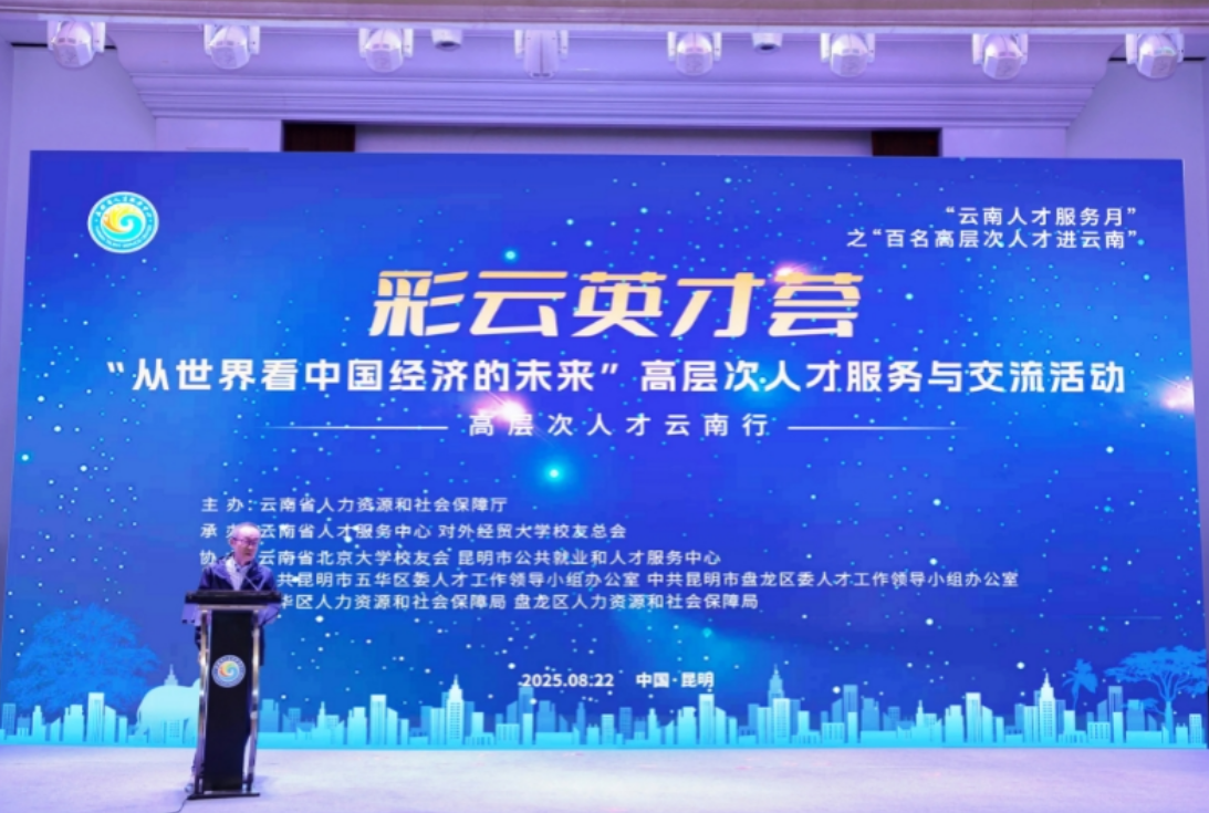 为深化高层次人才智力服务,助力云南高质量发展,8月22日下午,由云南省人力资源和社会保障厅主办、云南省人才服务中心联合有关单位承办的“彩云英才荟”高层次人才服务与交流活动在昆明举行。活动邀请了国家首批哲学社会科学一级教授、复旦大学经济学院院长张军教授作《从世界看中国经济的未来》主旨分享,并与云南经济领域专家、企业代表进行对话交流。省人力资源社会保障厅党组成员、副厅长郭品,副厅长熊梅和来自科研机构、大型国企、民企等100多名相关领域专家学者、人才代表积极踊跃参加活动。