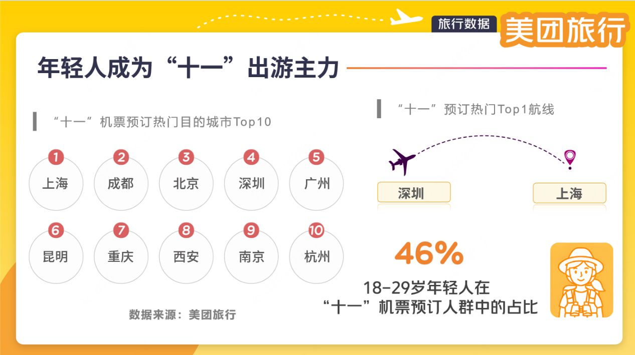▲美团旅行数据显示,18-29岁年轻人是“十一出行”主力 美团供图