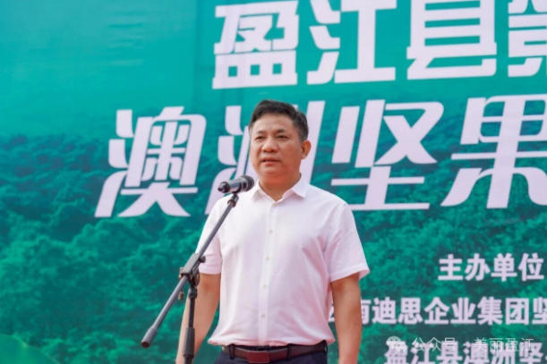 查金鹏在致辞时说,近年来,盈江县坚定不移走生态优先、绿色发展之路,持续将澳洲坚果产业作为促进群众增收、推动乡村振兴的特色优势产业重点打造;如今,一颗颗饱满的坚果,已成为名副其实的“致富果”“幸福果”。让我们以此次开采节为新的契机,共同采摘丰收的喜悦,共享发展的成果,携手奋斗,将“小坚果”真正做成推动盈江乡村振兴、富民强县的“大产业”!