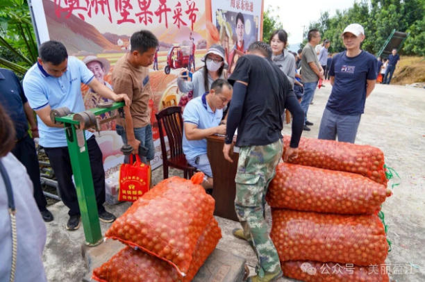 白露已过,秋意渐浓,盈江县田间地头满是丰收序曲。连片的澳洲坚果园里,翠绿枝叶间缀满饱满的坚果,正迎来成熟采收的黄金时节。 9月9日,盈江县第三届澳洲坚果开采节成功举办,标志着全县澳洲坚果正式开启采收季,一场属于盈江坚果的“丰收盛宴”就此拉开帷幕。
