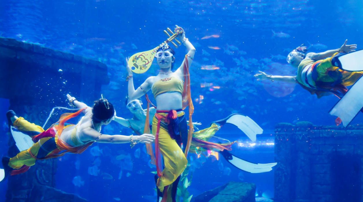整个黄金周期间,昆明融创海世界每日将呈现超30场精彩演出,打造全天不间断的欢乐盛宴。节日氛围尤为浓厚:游客可在深海之中见证一场特别的国庆仪式——五星红旗于蔚蓝海水中庄严升起,辅以清澈的童声合唱,仪式感瞬间拉满。恰逢中秋,一场独具匠心的“水下嫦娥奔月”表演将演绎唯美中式浪漫。此外,活泼的海豚海狮将献上贺礼,而小丑巡游、海底实验室等互动活动也将轮番登场,确保游客从早到晚畅享缤纷假期。