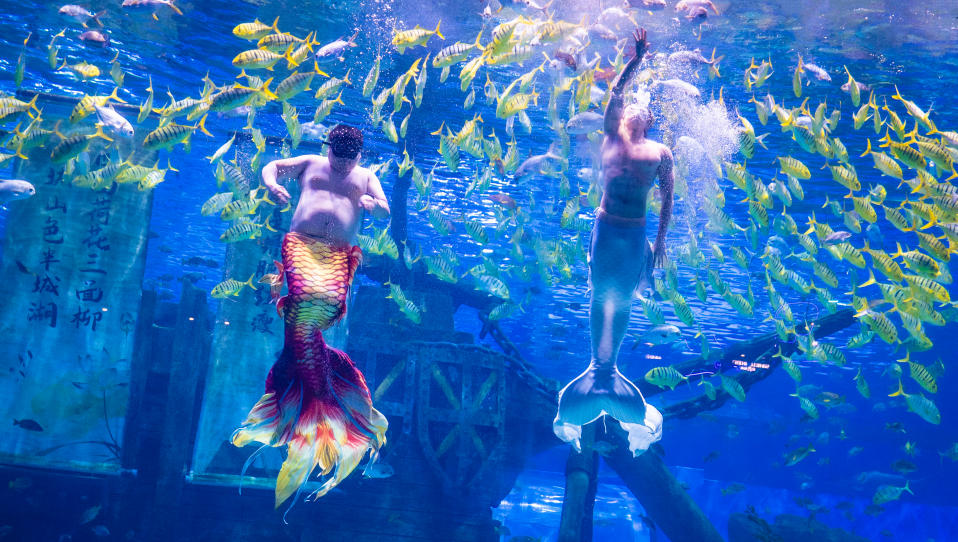 暑期凭借“野生菌”主题火爆出圈的“胖人鱼”表演,将在国庆黄金周惊喜返场。此次,火爆全网“胖人鱼”更将携手拥有八块腹肌的“美男鱼”同台献艺,共同组成水下最强CP。两者在外形上形成的极致反差萌,将为表演注入十足的戏剧张力与喜剧效果,为游客献上一场颜值与欢乐兼具的视觉盛宴。