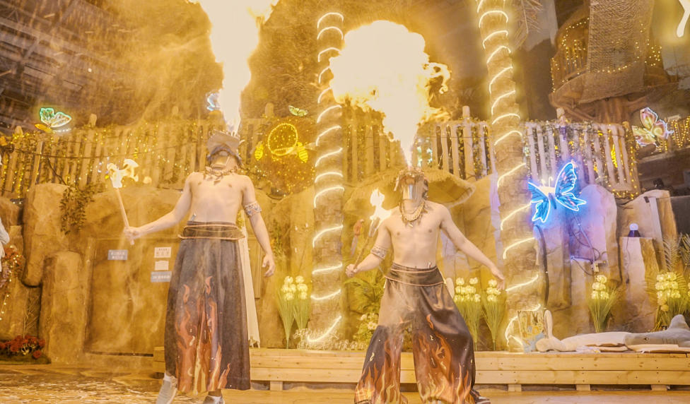 民族文化与魔幻技艺的交融亦是本次国庆活动的一大亮点。长达40分钟的沉浸式民族情景剧《阿佤人的魔幻之旅》即将呈现。演出深度融合佤族文化,集民族特色舞蹈、惊险喷火与奇幻魔术于一体。现场将以浑厚的铜鼓声拉开序幕,舞者以充满力量感的舞姿展现佤山风情,结合喷火、雪花、白鸽等魔术特效,共同营造一场极具震撼的视听盛宴。演出还设有互动环节,幸运观众可上台触摸古老道具,甚至化身“佤族儿女”零距离参与表演,获得身临其境的独特体验。