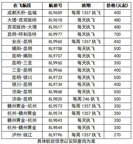 此次祥鹏航空推出的优惠航线覆盖广泛,串联起众多特色旅游城市,包括西南地区的昆明、大理、西双版纳、丽江、成都、泸州,华东地区的杭州、盐城、安庆、赣州、济南,华南地区的三亚、揭阳,华北地区的呼和浩特,以及西北地区的银川。航线地域跨度大,充分满足不同游客的出行偏好。同时,灵活的航班安排也为游客错峰出行提供了充足的选择空间。