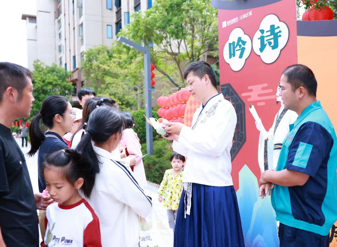 活动当日,各小区化身“国风打卡地”:灯笼高悬,谜题摇曳,业主们驻足猜灯谜,感受文字智慧的魅力;蹴鞠场边欢声不断,大人孩子齐上阵,体验千年运动的趣味;投壶区前排起长队,箭矢落壶的清脆声与喝彩声交织……“孩子第一次体验投壶,不仅玩了游戏,还了解了传统文化,特别有意义!”昆明业主李女士笑道。游园会以沉浸式互动,让传统文化在社区“活”了起来。