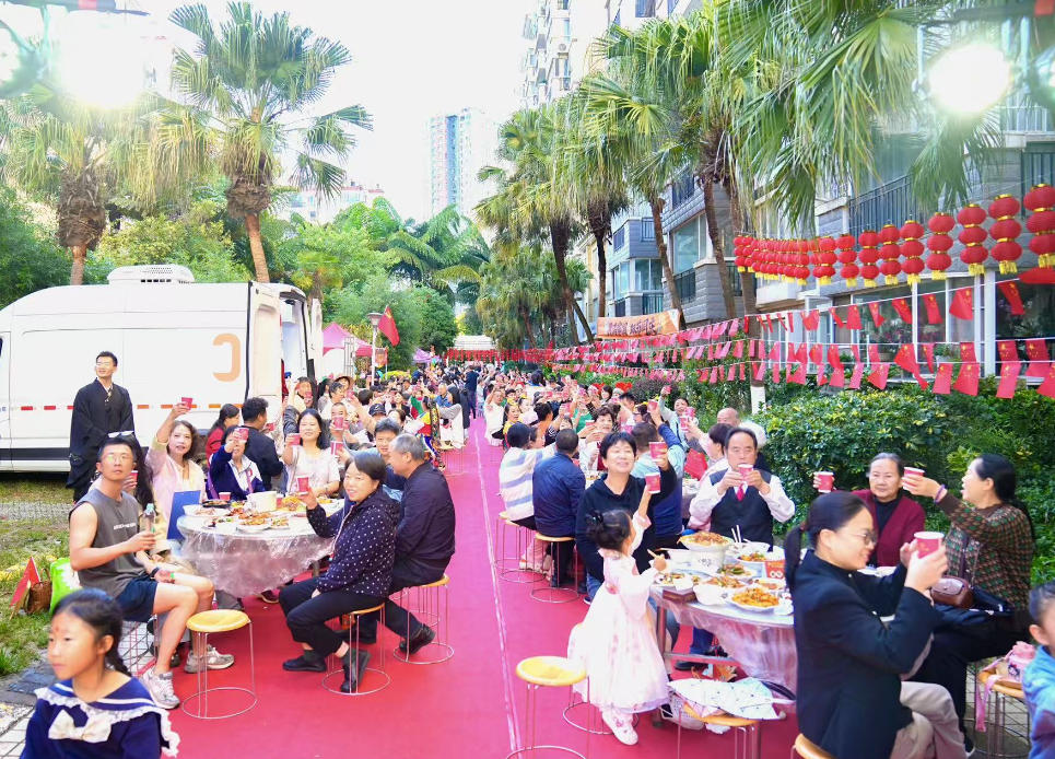 随着暮色降临,由碧桂园服务云南区域物业团队精心筹备的“暖心百家宴”正式开席。物业工作人员早早布置好温馨的宴会场,准备了丰盛的菜肴与节日特色美食。邻居们围桌而坐,在欢声笑语中品尝美食,畅聊家常,孩子们在席间嬉笑玩闹,现场气氛温馨而热烈。“平时工作忙,很少有机会和邻居们这样坐下来好好吃顿饭,感谢物业的用心,让我们感受到了大家庭的温暖!”玉溪项目的张先生由衷赞叹。这场由物业主导的家宴,不仅满足了味蕾,更成为了连接邻里情感的温暖桥梁。