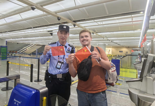 验证台上,小巧的国旗与验讫章相伴。民警刘亚宁递还证件时,国旗总会引发旅客默契的微笑。“这是最有力量的问候”,她表示,这抹红成为家国情怀的具象载体,让出入境的瞬间多了份温暖的联结。