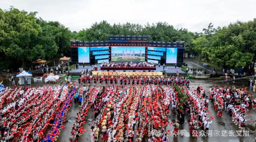 在盈江,“德控”杯篮球赛球员精准投篮引观众欢呼连连,首届村“YBA”篮球嘉年华村民得分让老乡拍凳助威;平原镇景颇文化传承基地10月1日目瑙纵歌鼓声响起,作为2025年国家级非遗展演及第四十三个民族团结月重要活动,以特色歌舞乐尽展民族文化魅力,众人身着盛装载歌载舞;旧城镇第九届香额湖围鱼节上,各族群众与游客共聚,以千年渔俗喜迎国庆、同庆丰收。