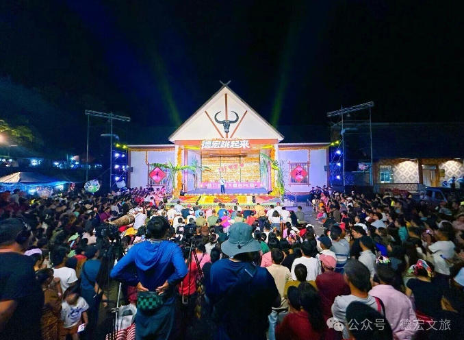 芒市珠宝小镇,“有一种叫云南的生活——德宏跳起来”系列活动精彩上演,非遗展示区与美食摊位前人头攒动。傣族古镇舞狮、孔雀公主巡游、非遗技艺专场演出不断。西山乡营盘村目瑙纵歌现场,村民与游客共舞。“魅力乡村大舞台PK赛德宏州2025年‘四季村晚’活动”为群众与网络观众送上视听盛宴。