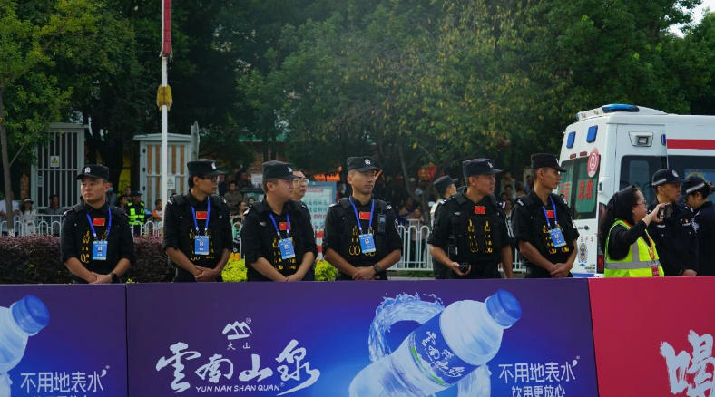 为确保赛事安全有序进行,昆明公安出动警力675人,发动保安员1400人,全体安保力量提前上岗,按照既定部署,全力维护好比赛起(终)点、线路和石林县社会面治安、交通秩序。