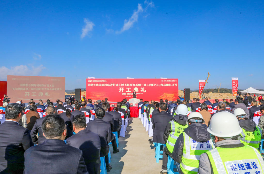 12月4日上午10时,昆明长水国际机场改扩建工程飞机维修基地一期工程开工仪式在基地现场举行。