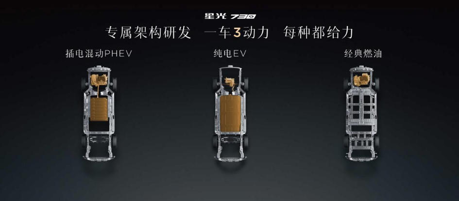 星光730基于“天與架构”自主开发,原生适配1.5T燃油、插电混动、纯电三种动力形式,针对不同家庭、不同地区的用户,带来行业唯一的“一车三动力”,让用户在真实场景和需求中来做选择。