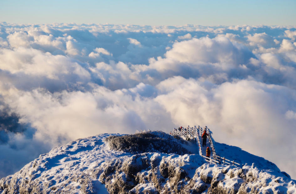 轎子山位於昆明市祿勸縣東北部,最高海拔4223米,是北緯26度上罕見的冬季雪山,素有「滇中第一山」之稱。每年冬季,這裏銀裝素裹,霧凇晶瑩,冰瀑垂懸,雲海翻騰,構成一幅夢幻的南國冰雪畫卷,成為眾多遊客賞雪、玩雪、滑雪的向往之地。