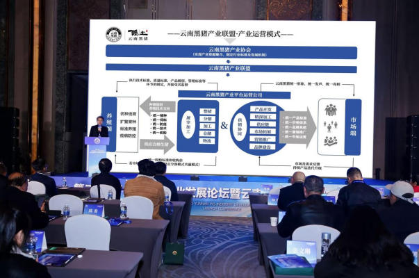 雲南本土豬種撒壩豬、大河烏豬、高黎貢山豬、臻土雲南黑豬等企業代表共同參與了雲南黑豬產業聯盟的正式啟動。