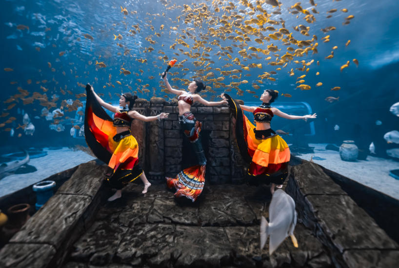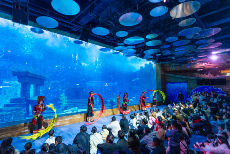 这个春节,昆明融创海世界焕新开启“海底非遗年”主题活动。其中,最具突破性的亮点当属全国首创的 “水下非遗花腰彝舞龙” ——将云南独有的国家级非遗“花腰彝舞龙”首次引入深海展缸。游客不仅能见证千年彝绣在波光中流转,还能沉浸式体验民族文化与海洋奇观的创新融合,在蔚蓝深处过一个有底蕴、有看点、有记忆的中国年。