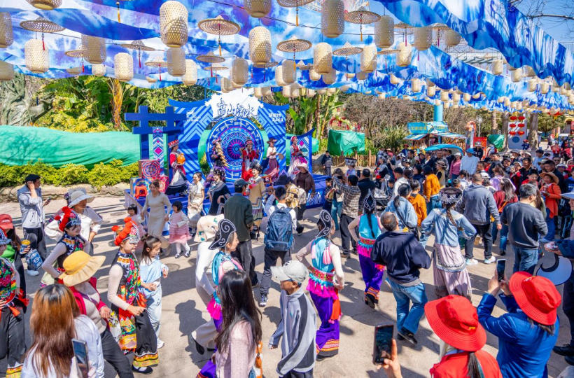 当鼓声敲响新春的序曲,当醒狮衔来新年的祝福,当幻彩烟花点亮团圆的夜空……一场有声有色的新春盛宴已在七彩云南古滇度假区热闹上演!活动以“骐骥贺岁·年在古滇——2026新春奇妙会”为主题,将民族风情融于传统年味中,以“巡游、庙会、新春演艺”为核心内容,为五湖四海的游客朋友们呈上视听交融的文化盛宴。活动于2月17日至3月3日持续15天,吸引全国各地游客共赴这场奇妙之旅。