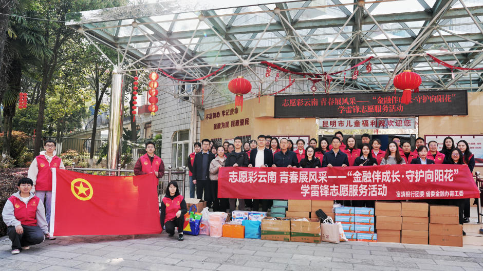 3月5日,在全国第63个“学雷锋纪念日”、第27个“中国青年志愿者服务日”来临之际,富滇银行团委与省委金融办青工委联合走进昆明市儿童福利院,开展“金融伴成长·守护向阳花”学雷锋志愿服务活动,以实际行动响应共青团“志愿彩云南 青春展风采”志愿服务工作要求,用青春温情守护特殊儿童成长,让雷锋精神在新时代的实践中赓续传承。