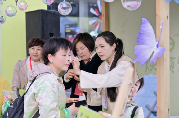 市集深处,“春日焕颜坊”围满了人。轻美妆体验区,化妆师正在为一位女士打造春日元气妆。刚做完头皮按摩的王阿姨满意地摸了摸头发:“女儿拉我来的,说今天是三八节,得好好宠自己。没想到这个按摩还真舒服,店员还教我怎么春季养发。”